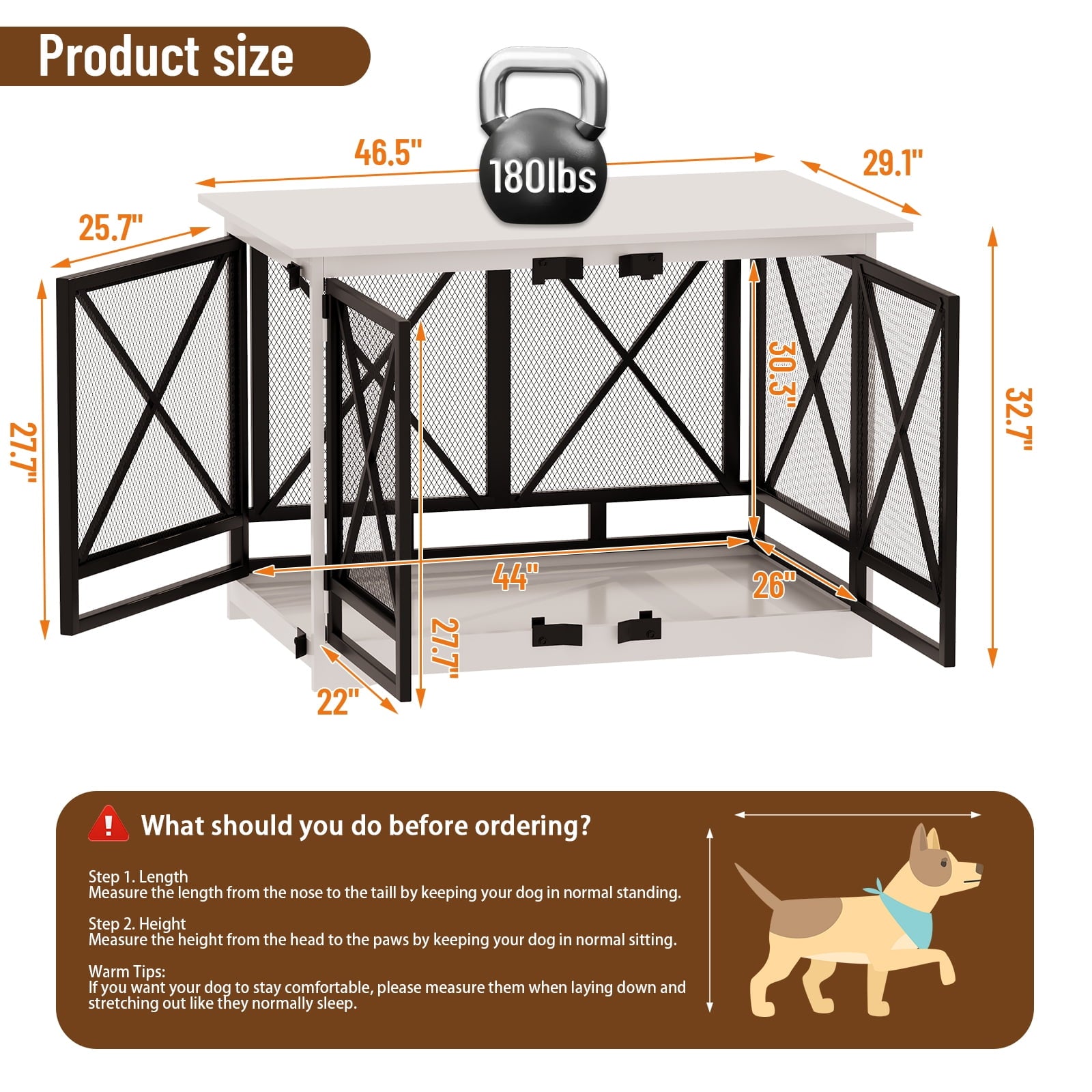 - Chew-proof steel and wood construction: Featuring a dual-layer steel mesh that resists bending and scratch-resistant wood panels tested for dogs up to 80 lbs, this crate is built to withstand even the most determined chewers.