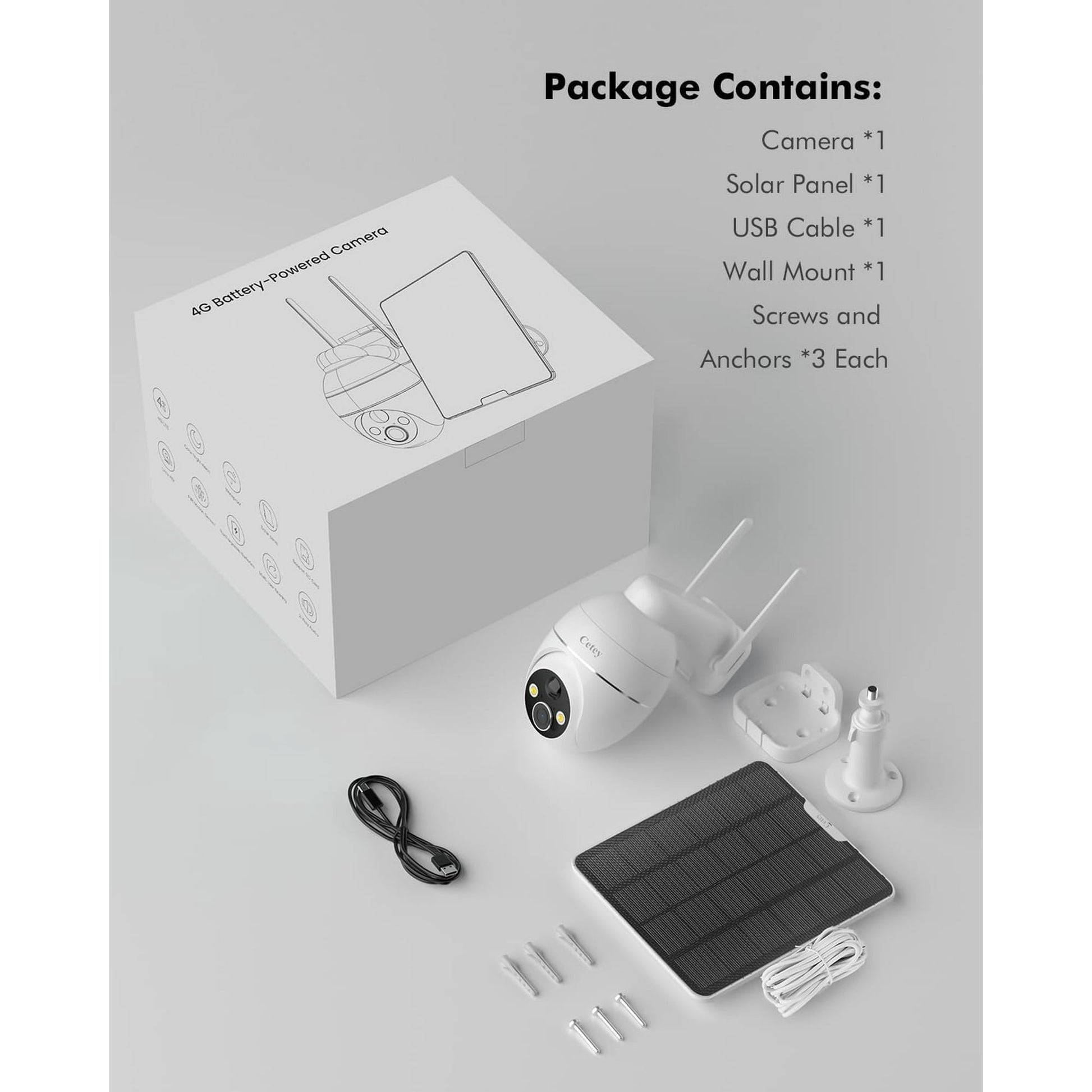 No WiFi Needed & Solar Powered: This 4G LTE cellular security camera is your go-to solution for locations without Wi-Fi or power. Perfect for barns, farms, ranches, construction sites, vacation homes, warehouses, and RVs, it offers seamless monitoring with 4G LTE coverage. Say goodbye to wires and enjoy reliable security cameras wireless outdoor(Wi-Fi connection not supported) 2K HD & Stunning Full-Color Night Vision with 360° Coverage: See every detail in sharp 2K resolution, even at night, with vibrant full-color night vision. The 360° view ensures no blind spots, giving you complete peace of mind. Powered by solar energy, this 4G LTE cellular security camera is perfect for reliable, all-weather monitoring. Upgrade to this solar camera outdoor wireless and experience unparalleled security, day or night Solar Powered & Weatherproof: This solar security camera wireless outdoor features a 9600mAh rechargeable battery and a 5W solar panel for continuous power. Its IP66-rated design is waterproof, freeze-proof, windproof, and dustproof, ensuring reliable performance in any weather. As a 4G LTE security camera outdoor, it’s completely wire-free, making installation simple and perfect for secure, all-weather monitoring Two-Way Audio & Intelligent Alarm System: This solar powered security camera offers real-time two-way audio, letting you communicate instantly with anyone near the camera. Its advanced alarm system detects threats and triggers sirens or lights for added protection Cloud/TF & Free 7-Day Trial with Unlimited 4G Data: This security camera outdoor supports TF cards (up to 128GB) and cloud storage. Enjoy cost-effective plans: unlimited 4G data for $18.99/month, $49.99/90 days, or $179.99/year. As a reliable solar outdoor camera, new accounts get a free 7-day trial upon first activation, SIM card support for AT&T, T-Mobile and Verizon networks