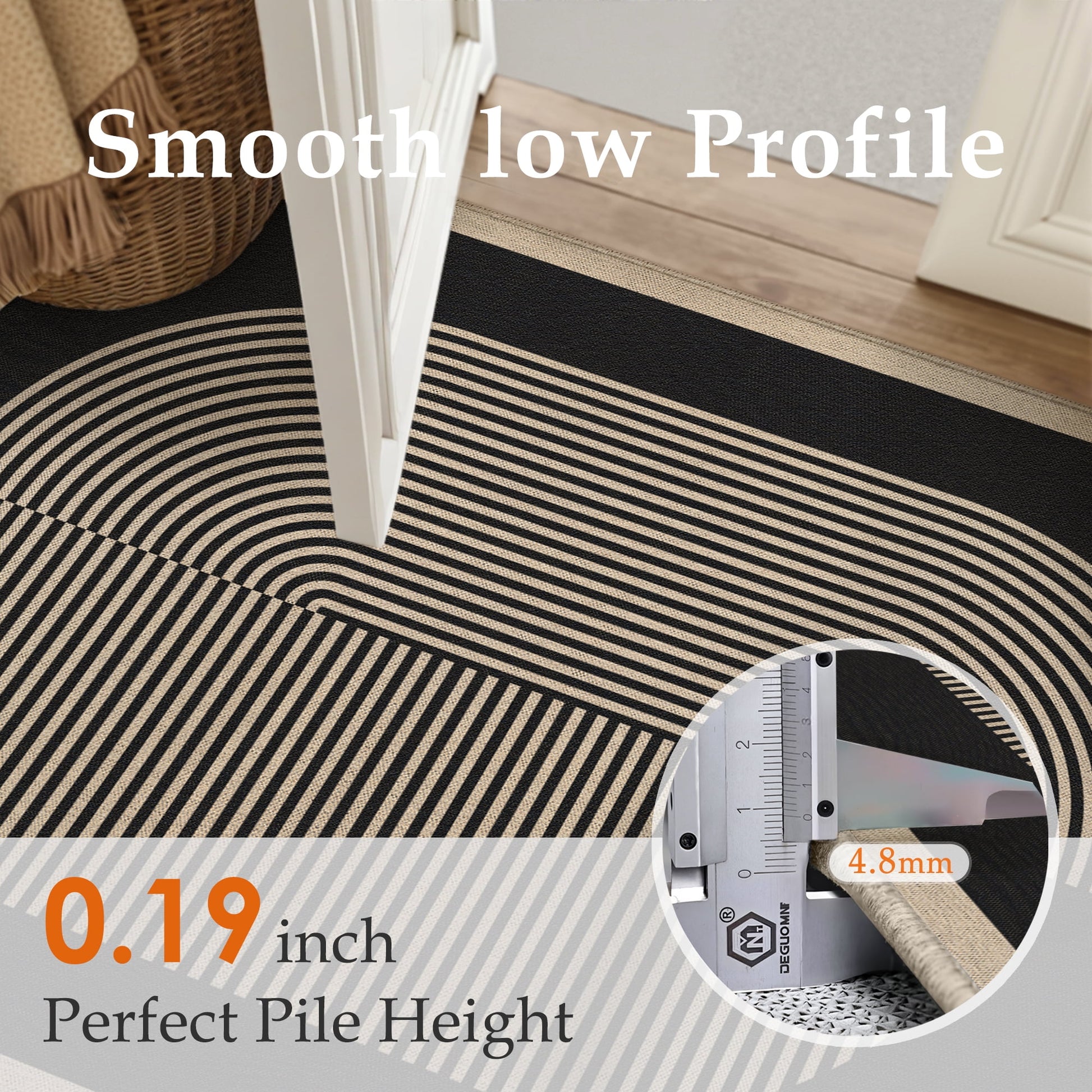 BERTHMEER 8'x10' Large Easy Jute Area Rugs for Living Room, Washable Outdoor Patio Rugs Indoor Outdoor Carpet for Farmhouse Neutral Geometric Non Slip Black Rugs for Bedroom Dining Room