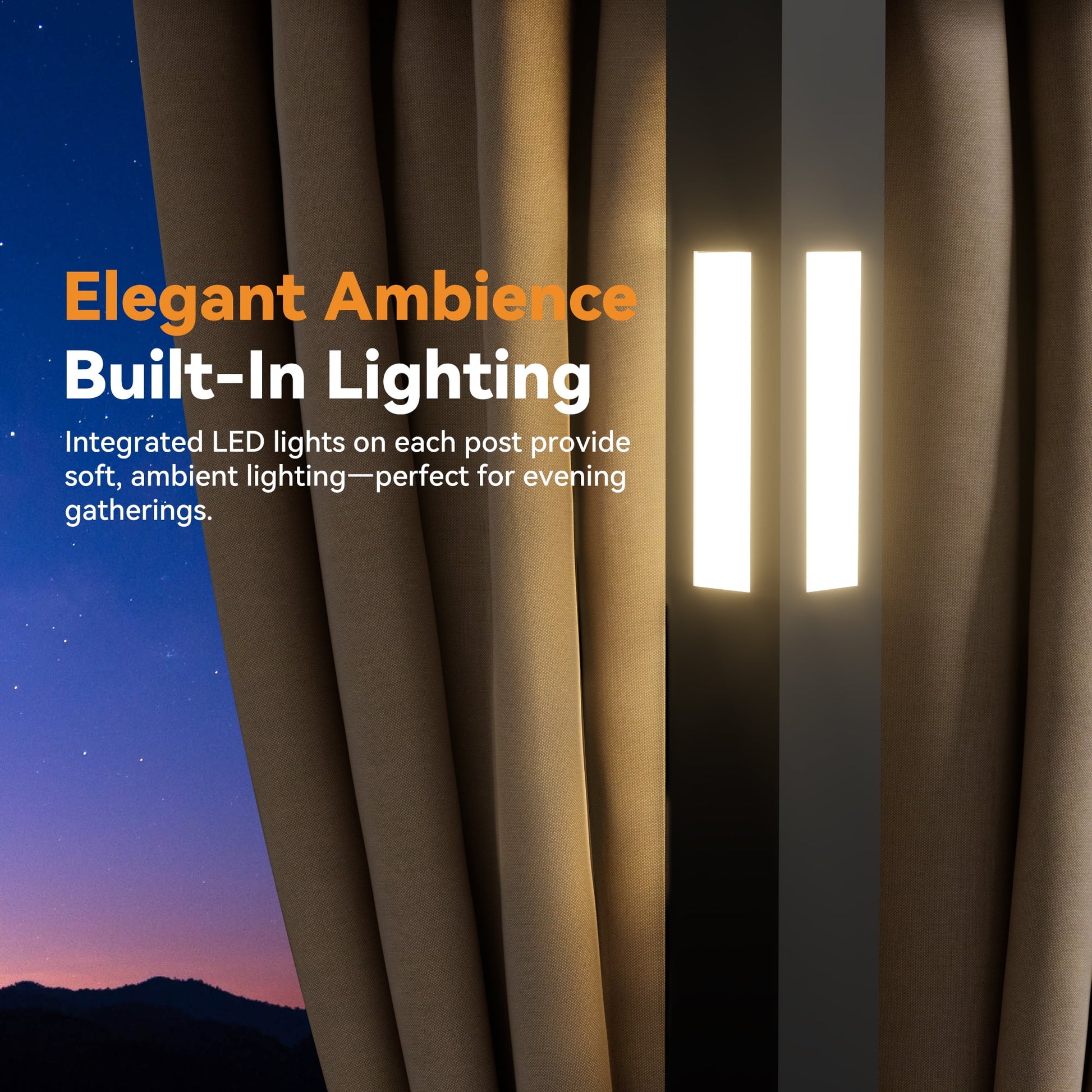 Covered Outdoor 11x13 Patio Gazebo Canopy Tent,Pop Up Gazebo with LED Lighting,Soft-Top Dual Roof Design