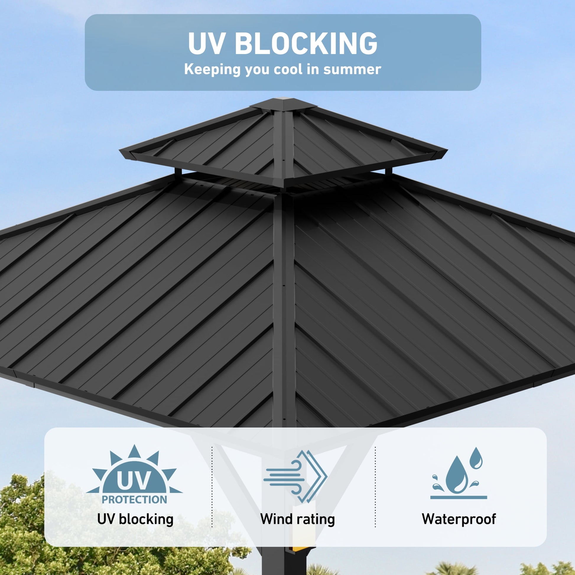 FONA 10'x10' Hardtop Metal Gazebo with LED Light,All-Weather Outdoor Pavilion for Patio,Garden,Black