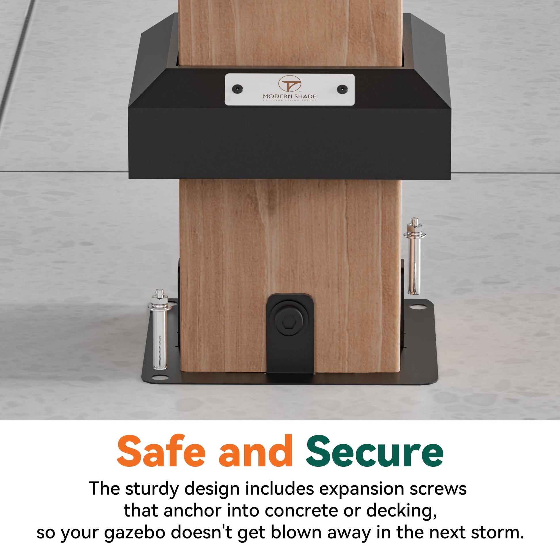 - BUILT TO LAST:The fade-resistant,rust-resistant galvanized steel roof that crowns the cedar wood gazebo protects you from the harsh sun and heavy rain making it a four season entertainment space.Concrete anchor bolts are included for added stability, and the roof has a 3,000 lb snow capacity.