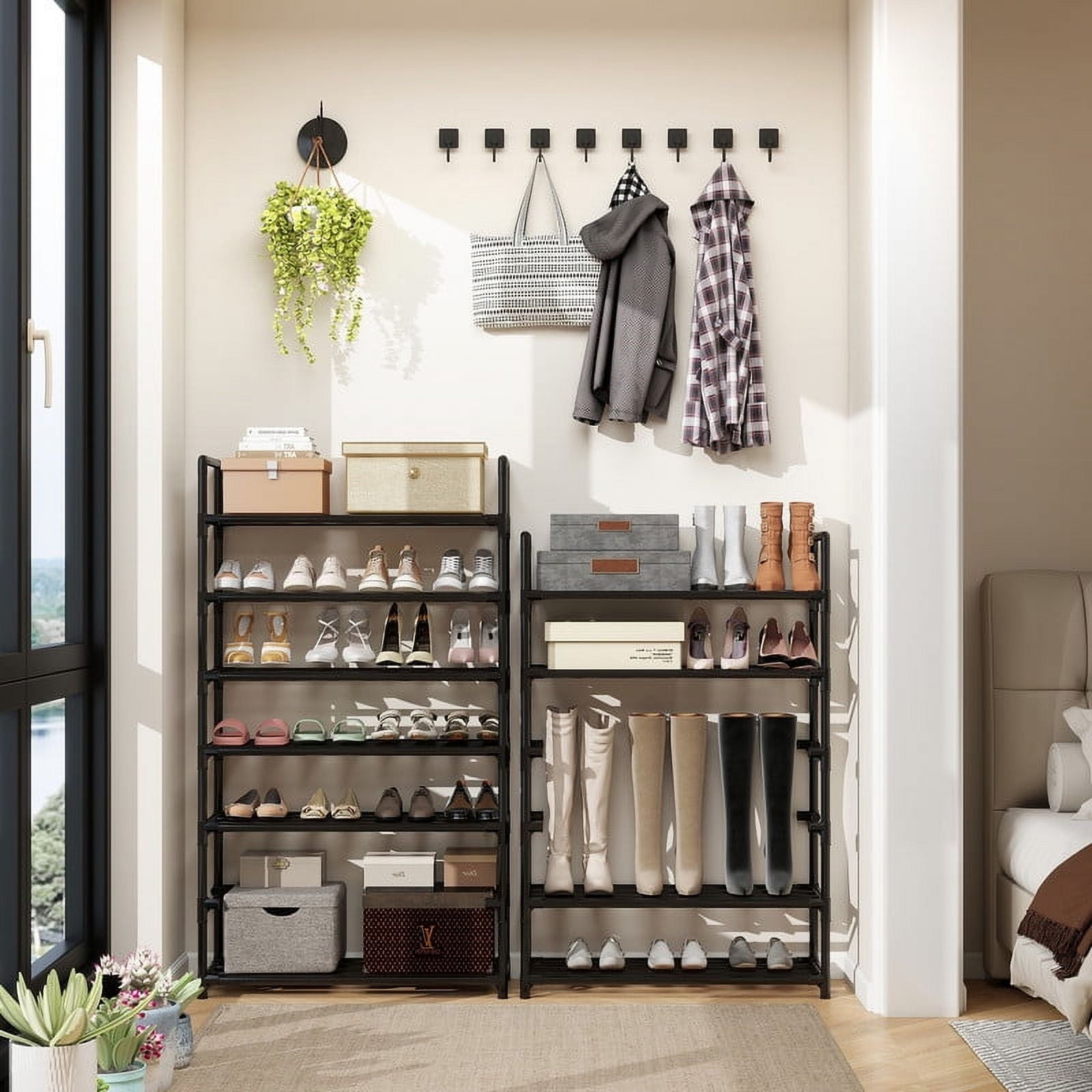 - 【Versatile Use】: Employing the shoe organizer enables you to store shoes, boots, purses and other accessories in an ideal way, helping you maintain a clean and well-organized home atmosphere.
