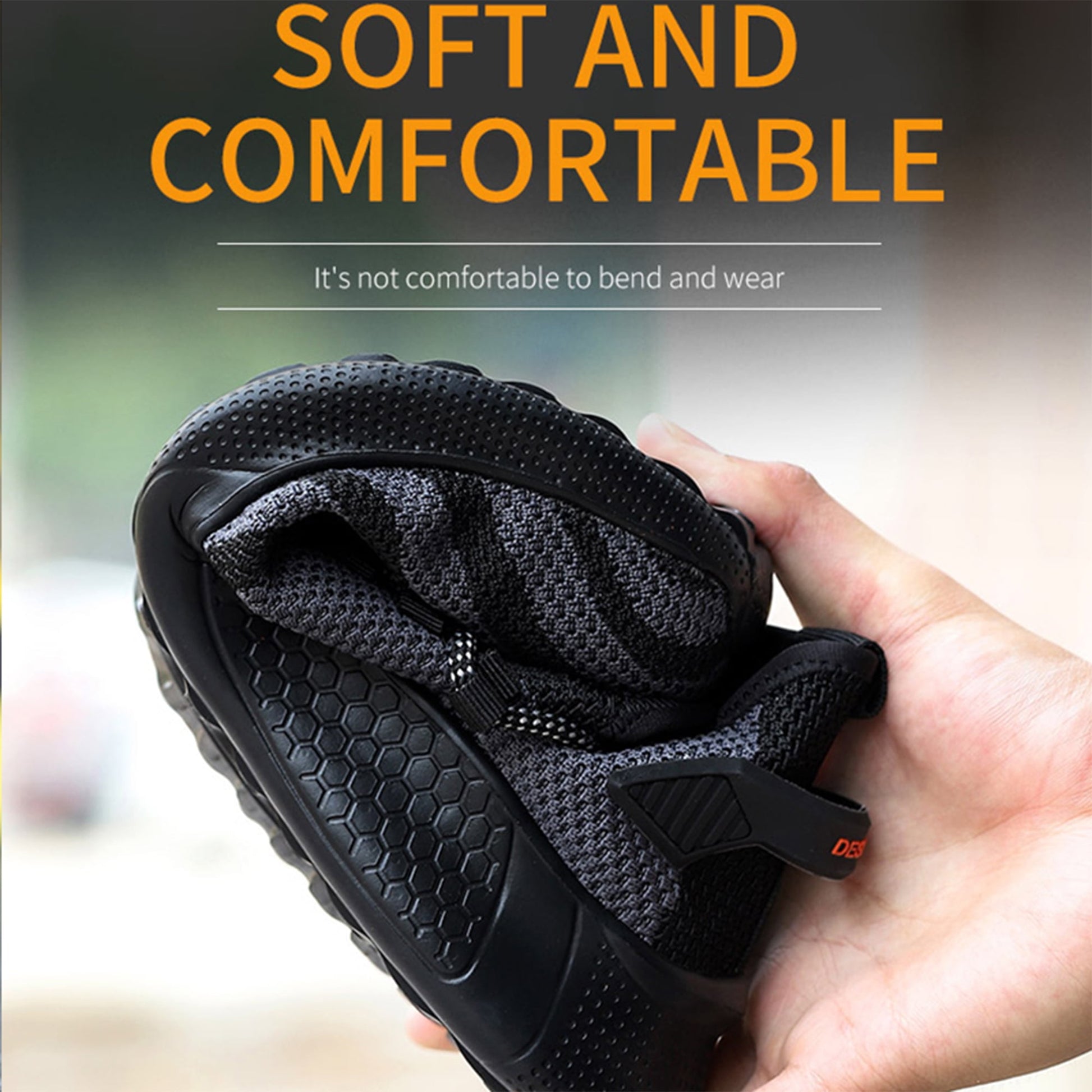 MANLEGU Breathable Safety Shoes for men are engineered with advanced features to provide reliable protection and comfort in demanding environments. These lightweight work shoes incorporate durable steel toe caps to shield your feet from heavy impacts and a puncture-resistant Kevlar midsole that guards against sharp objects such as nails and glass. Designed with an ultra-lightweight woven mesh, they offer complete breathability to keep your feet dry, fresh, and light throughout the day. The abrasion-resistant, non-slip tread sole ensures a firm grip, making them ideal for construction, industrial settings, outdoor activities, and even hiking or mountaineering.