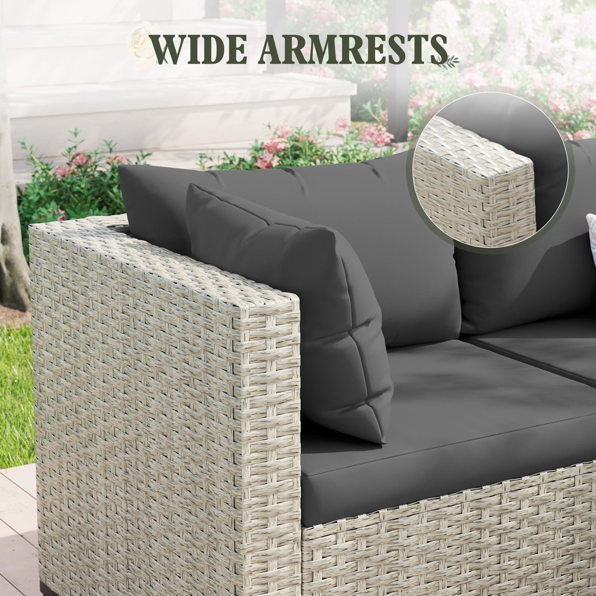 - This woven rattan sofa has a smooth surface and is not easy to accumulate dust. Just wipe it gently with a damp cloth for daily cleaning. The high-elastic cotton core thickened seat cushion adds extra comfort to your seat; the seat cushion is splash-proof and washable; the removable cotton cloth can be removed from the zippered seat cushion for washing. Note: The waterproof rating is not enough to prevent rain.