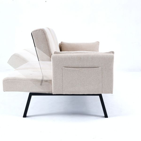 TIRAMISUBEST 70 Inch Convertible Sofa Bed Sleeper Couch Foldable Cup Holder Side Storage Guest Ready Small Space, Pink