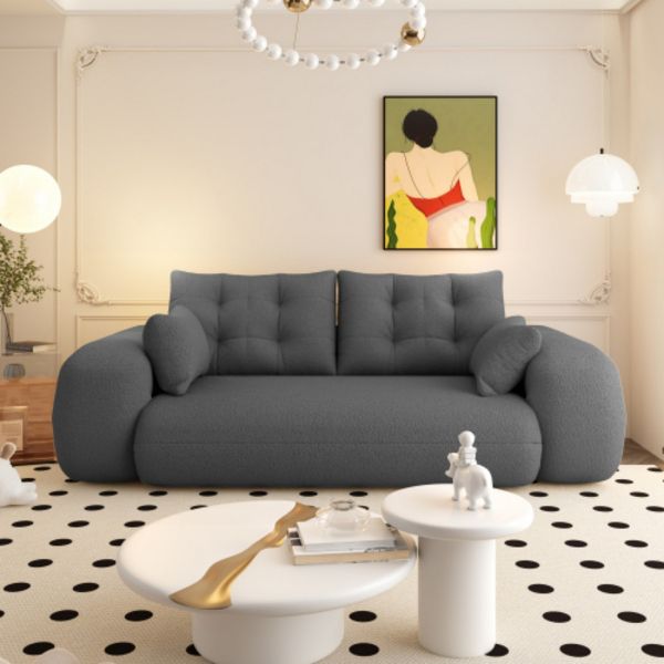 Premium Comfort: Upholstered in soft, breathable Teddy fabric, this convertible sofa bed features high-density foam that effectively alleviates pressure while providing robust support. The accompanying plush pillows enhance your lounging experience, ensuring relaxation like never before.Perfect for the whole family, it's a cozy haven that's as kind to sensitive skin as it is stylish.