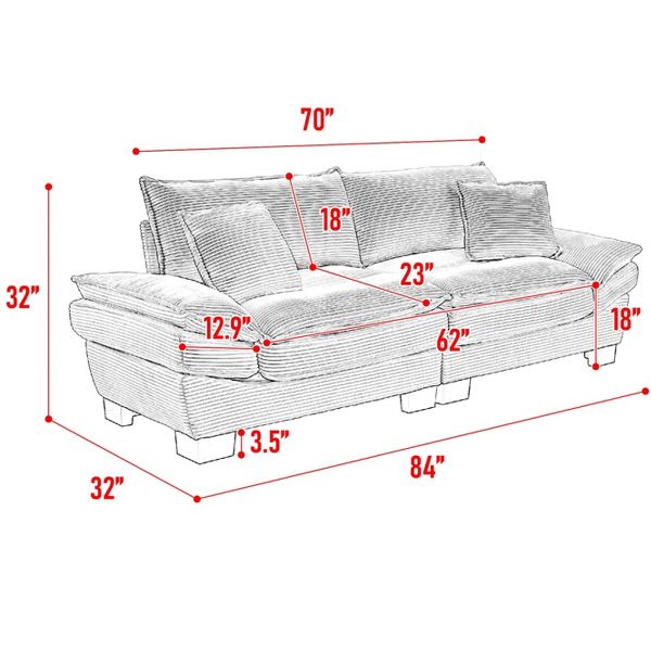 Breathable Corduroy Fabric: Deep seat sofa is upholstered with corduroy fabric, offers a luxuriously soft and plush texture, inviting relaxation and comfort.