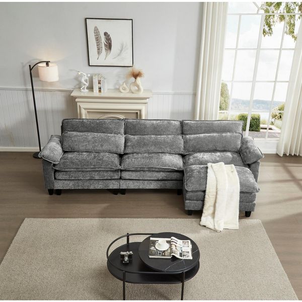 TiramisuBest L Shape Chenille Modular Sectional Sofa with Ottoman Deep Seat Cloud Couch Memory Foam Cushions and 5 Pillows, 120"*32"*38.3"