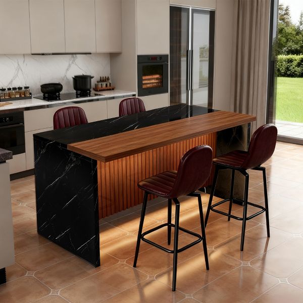Versatile Centerpiece for Multiple Spaces: Perfect as a kitchen island, breakfast bar, dining table, or living room centerpiece. Assembly is simple. Its neutral black marble design complements a variety of decor styles, from modern to minimalist.