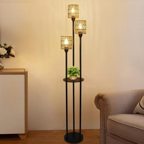 TiramisuBest lights and displays in one sculptural piece. Three natural rattan shades cast a warm, coastal glow while a built-in shelf keeps plants or books within reach. Tap the foot switch for hands-free control and let the weighted base steady your space. Screw the sections together, add bulbs, and watch the slim boho tower turn any corner into a cozy, organized retreat.