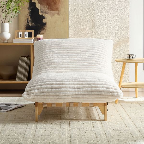 TiramisuBest Off-White Corduroy Lazy Sofa, Modern Armless Single Seat with Backrest for Living Room & Bedroom