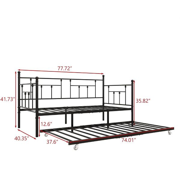 TiramisuBest Twin Metal Daybed and Trundle Set, Elegant Victorian Sofa Bed for Living Room & Guest Room,Black