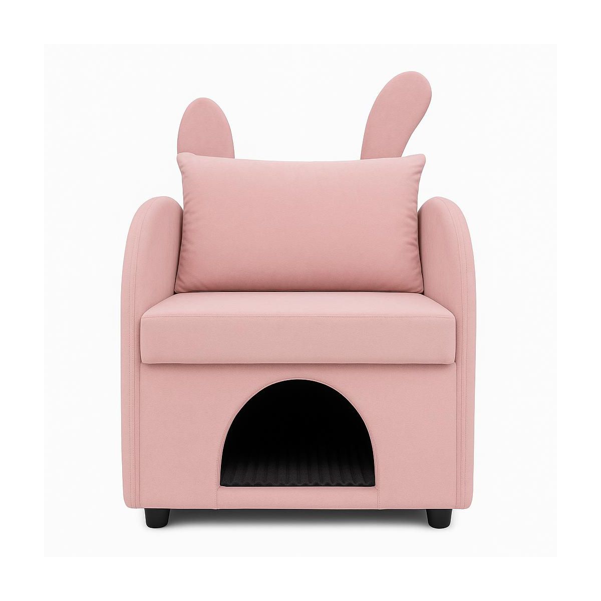 2-in-1 Velvet Armchair & Pet Hideaway,Elegant velvet pink fabric armchair for you, with a built-in private cubby for cats or small dogs underneath.