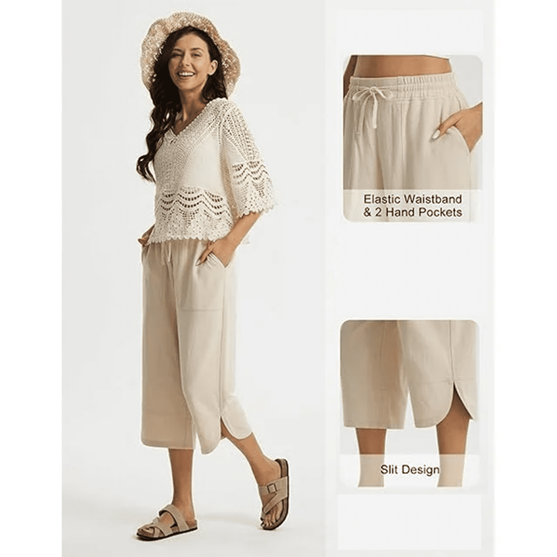 Ultra-Soft Linen Blend Fabric – Made from a premium cotton-linen blend, these women’s capri pants are breathable, moisture-wicking, quick-drying, and incredibly soft—ideal for staying cool and comfortable on hot summer days.